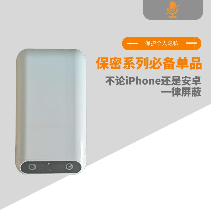 防护盒内置语音信息屏蔽模组:在盒内形成屏蔽场。手机不使用时,将其放在盒内即可有效杜绝语音泄密,同时也不影响手机信息的正常接收。