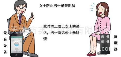 The product test shows that in order to prevent the man from recording his own voice, the woman just needs to turn on the recording shield and place it beside her. At this time, the recording device within the shielding radius of the recording shield can no longer record the woman's voice. Even if the man's voice is recorded, it does not matter. In practical use, only refer to the above description.
