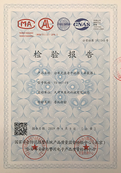 英讯YX-007-FX系列录音屏蔽器喜获公安部检测,政府机关可以招标采购了