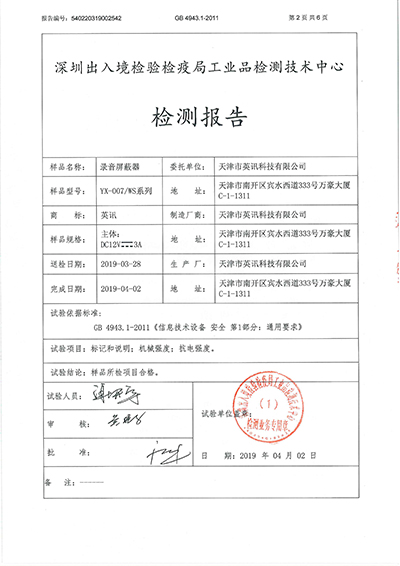英讯YX-007/ws系列通过深圳出入境检验检疫局工业品检测中心的检测