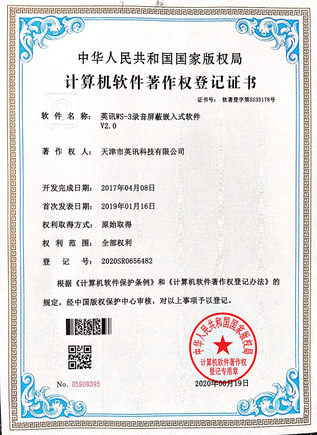 公司WS-3录音屏蔽器产品获得计算机软件著作权登记证书!!!