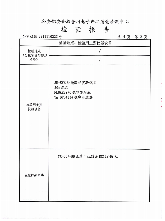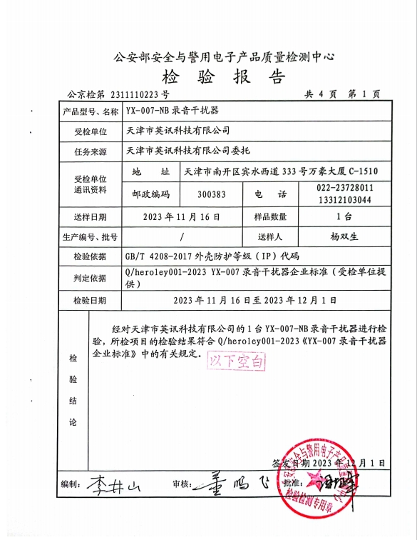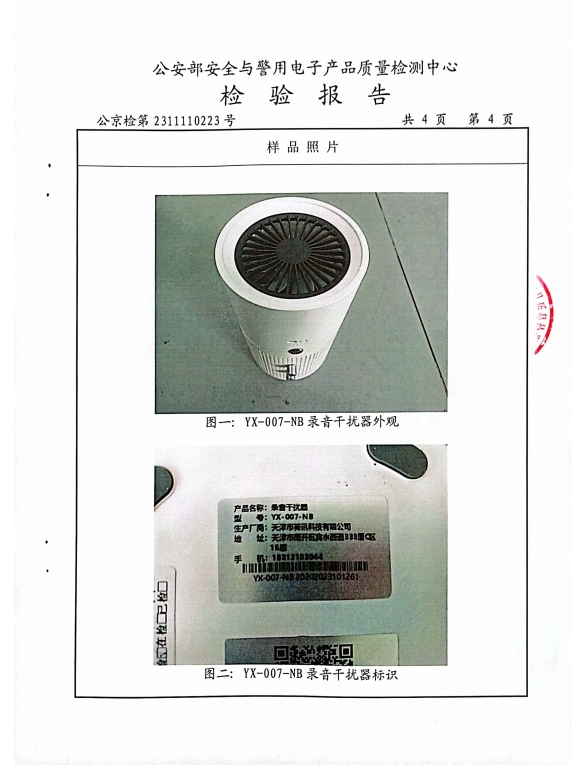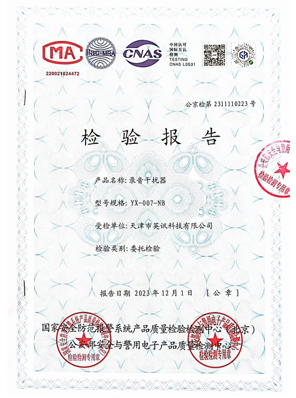 英讯YX-007-NB空气净化器型录音屏蔽器喜获公安部检测报告!!