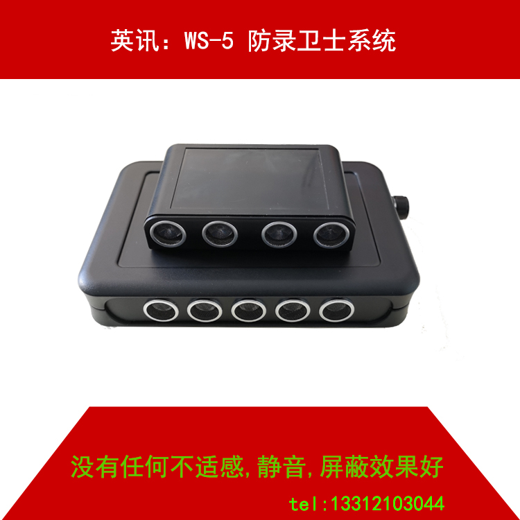 Ws-5型防录卫士是我司根据市场的需求研发的一款加强型录音屏蔽器系统,此系统由屏蔽器主机和扩展器两部分组成,主机配置五个信号发射端子,扩展器配置四个信号发射端子,两者通过有线连接,分别布置在非法录音者的周围形成屏蔽网,能够实现背对麦克风屏蔽,达到理想的屏蔽效果。