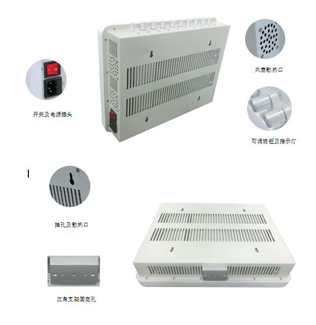 8. 内置工业电源适配器,设计软启动电路,交流浪涌电流限制,工作温度低,使用寿命长。