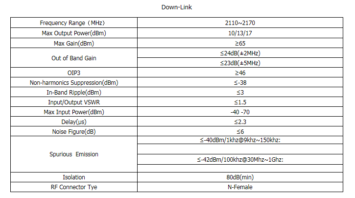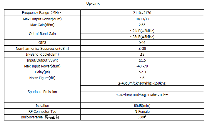 输出功率: 上行﹥0.8W,下行﹥0.9W