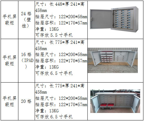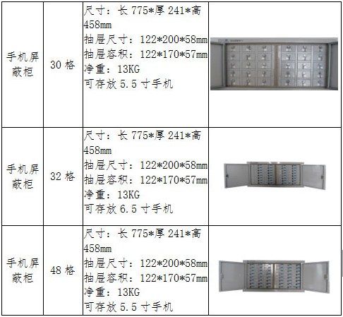该产品采用严密的结构设计,内部采用电镀处理,表面静电喷塑,具高耐磨性及防腐性,防辐射性能强,屏蔽效能好,可有效抑制移动电话信号的泄漏,并可同时存放多部移动电话,每个抽屉采用安全式信箱锁,独立式管理。适应于党政机关,军队,会议室,考试场所等涉密场所的移动电话集中管理,不受用电环境的影响。