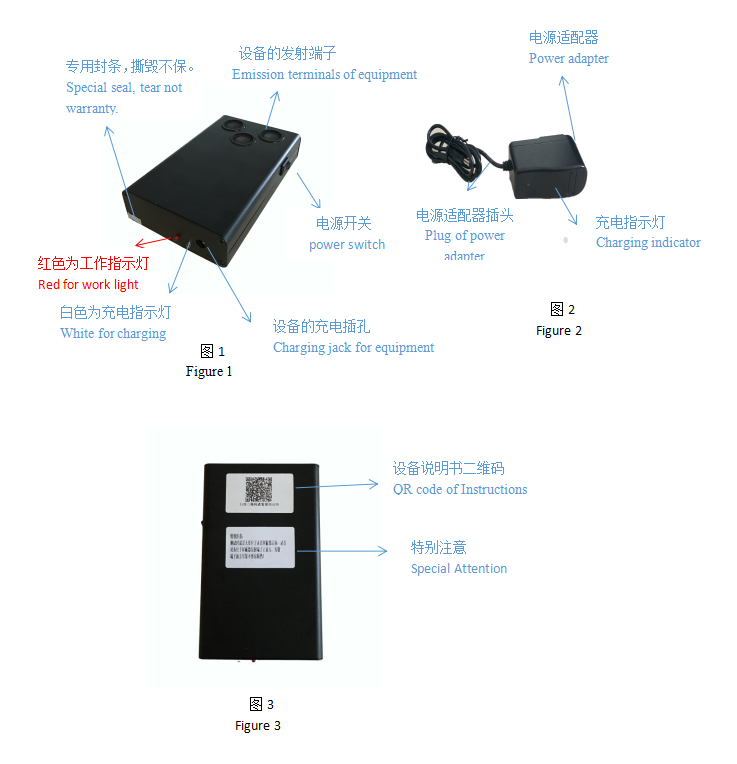 打开设备:打开图一的电源开关,工作指示灯点亮,设备工作;