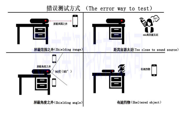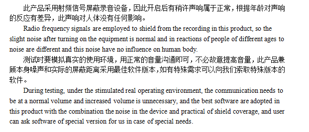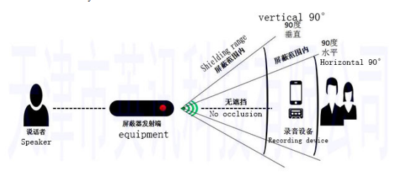 注意:手持录音屏蔽器的发射端子正对录音设备的时候屏蔽效果最好。
