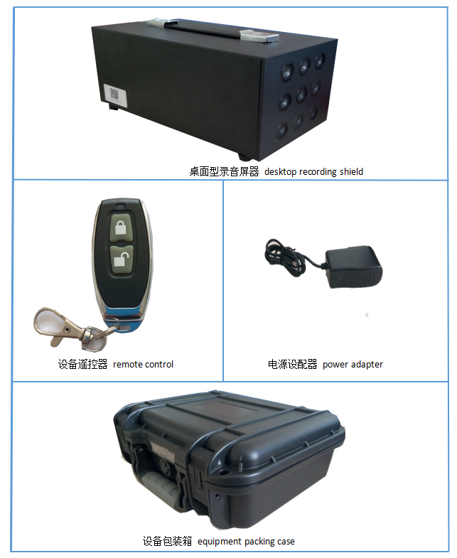 注意:桌面型录音屏蔽器的发射端子正对录音设备的时候屏蔽效果最好。