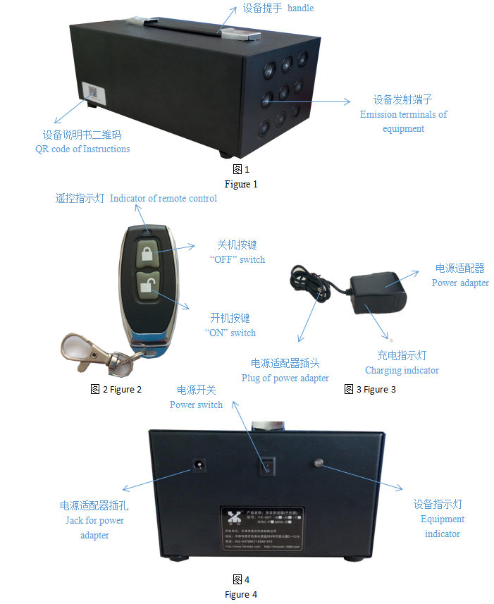 ② Turn the power switch to “ON” of the remote control in Figure 2, and indicator of remote control will flash with the equipment in operation, and turn the power switch to the “OFF” of the remote control and the and indicator of remote control will flash with the equipment in standby.