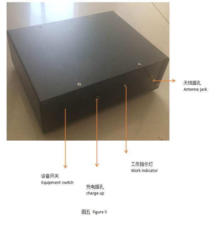 打开设备:打开图五的电源开关,工作指示灯点亮,设备处于待机状态,按下遥控器的开锁按钮,设备开始工作;
