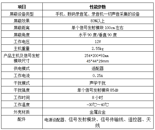 本款YX-007-F12录音屏蔽器是由天津市英讯科技有限公司自主研发的,高度集成化的高科技安全防护产品。当不法分子采用录音设备(如手机、录音笔、录音机等)对您进行录音时,录音屏蔽器会产生随机性的噪音信号,该信号能够对语音信号产生压制性干扰,使录音设备拾取的只有噪声信息,而无法分辨出语音信息,从而确保语音信息的安全。主要应用于:机密会议室。