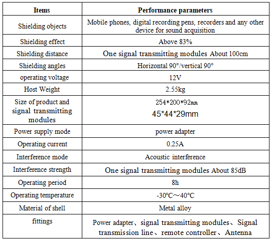 This YX-007-F12 recording shield independently researched and developed by Tianjin Yingxun Technology Ltd, is a high-tech safety protective apparatus with high level of integration. In case of being illegally recorded via recording devices (such as mobile phones, recording pens and recorders and so on), the recording shield will generate random noise signals which can oppressively interfere with speech signals so that only noise information is picked up by recording devices and the speech information cannot be distinguished to make sure of safety of speech information. Generally applied: Confidential conference room.