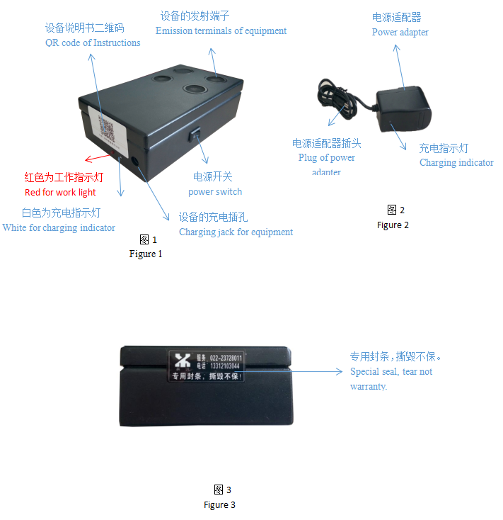 打开设备:打开图一的电源开关,工作指示灯点亮,设备工作;