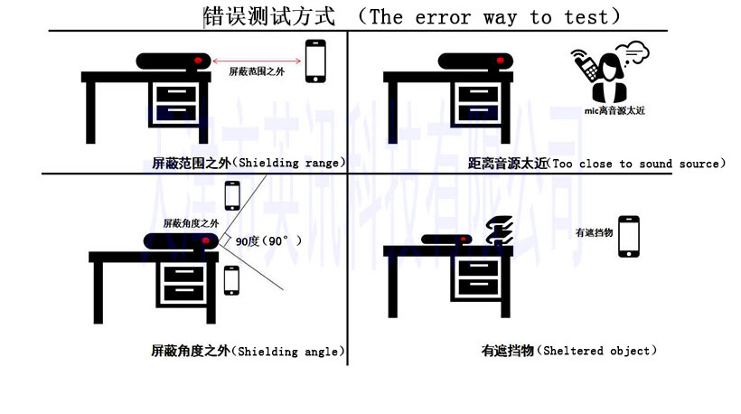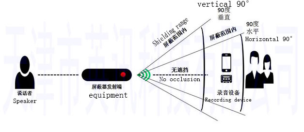 注意:手持录音屏蔽器的发射端子正对录音设备的时候屏蔽效果最好。